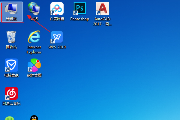 1、打开电脑桌面上的“计算机”图标: