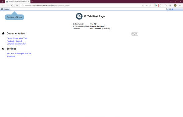七、重启Edge浏览器,然后点击IE tab插件图标,进入IE tab页面,在IE tab页面输入框输入地址进行访问,这样在这所有的操作就和IE一样
