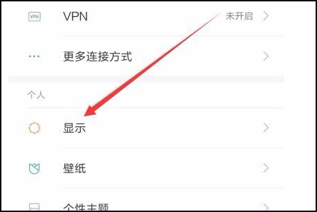 2、在打开的小米手机设置页面中,点击“显示”菜单项。