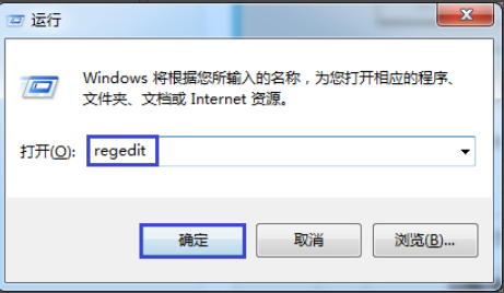 2、输入“regedit”,确认无误后点击“确定”按钮或直接按回车键。
