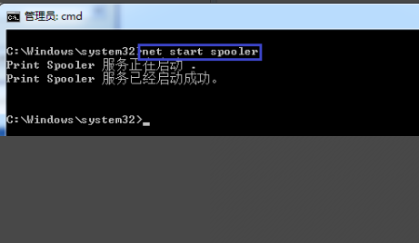 9、 在管理员模式命令行下输入“net start spooler”并按回车键,启动打印服务即可。