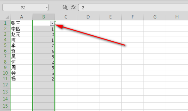 2、选择过滤器目标列,然后按过滤器快捷方式。