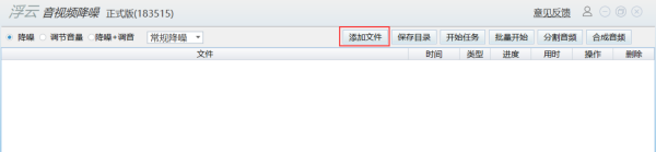 1、点击添加文件,把需要降噪的音频或者视频文件添加进去;