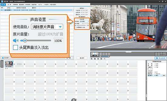 方法1:在视频列表中选中要去除声音的视频片段,然后在“声音设置”栏目的使用音轨下拉框中,选择“消除原片声音”,设置完成后点击“确认修改”按钮。