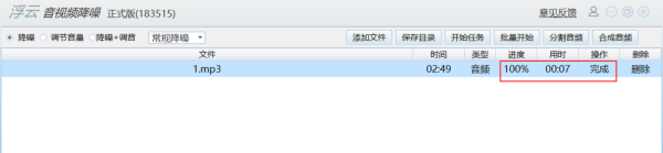 3、点击开始任务后,就开始降噪了,这里也支持批量开始,也就是多个文件可以同时处理;