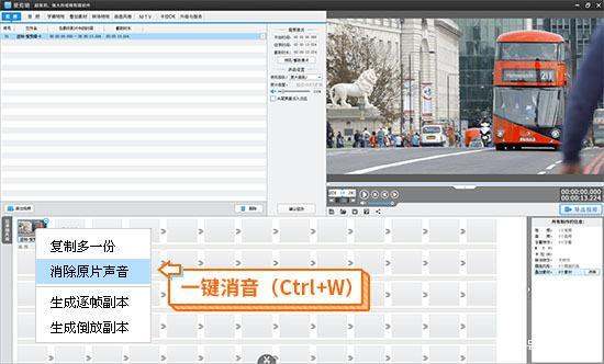 方法2:在底部“已添加片段”列表中,鼠标右键要去除声音的视频片段缩略图,在弹出的右键菜单中,选择“消除原片声音”(快捷键“Ctrl+W”),即可为视频一键消音。