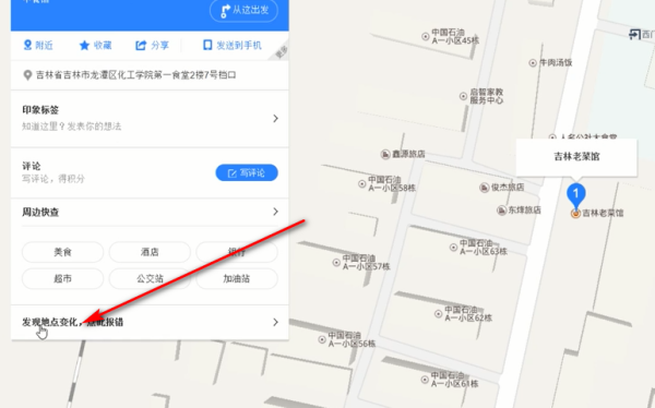 3、搜索到自己店铺,在界面下方点击“发现地点变化”选项,打开。