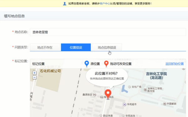 5、可以在地图上拖动位置更改自己店铺的地址,如下图所示。