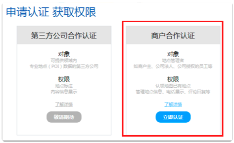 3、点击商家的自由标识,弹出如下窗口,选择相应的认证,点击立即认证。