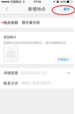 7、正确输入地址、店铺类型、电话、照片和营业执照等信息后,点击提交即可。提交审核通过后,在微信定位上就成功添加店铺了,如下图所示。