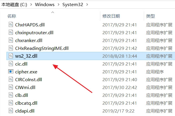 2、其次,将ws2_32.dll文件复制到DLL目录“C:\Windows\System32”下。