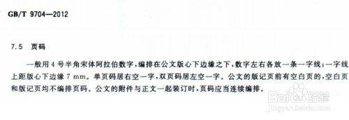 一般用4号半角宋体阿拉伯数字,编排在公文版心下边缘之下,数字左右各放一条一字线;一字线上距版心下边缘7 mm。单页码居右空一字,双页码居左空一字。公文的版记页前有空白页的,空白页和版记页均不编排页码。公文的附件与正文一起装订时,页码应当连续编排。