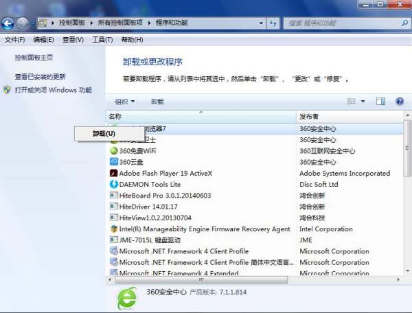 1、想卸载360导航,可以打开控制面板,然后在程序和 功中去找能360 导航,所有的程序都被在这里列表供用户选择删除。 2、删除方法是:打开程序和功能,就会看到列表,找到这个程序,然后用右键点击一下会出现删除命令,点击一下就能开始删除过程。等一小会,就会提示完成。怎么卸载360桌面导航?