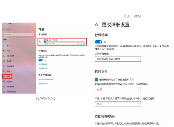【设置】——【存储】界面,有一个叫做存储感知的选项,打开后每隔一段时间( 可自定义 ),系统就会帮你自动清理临时文件释放空间。