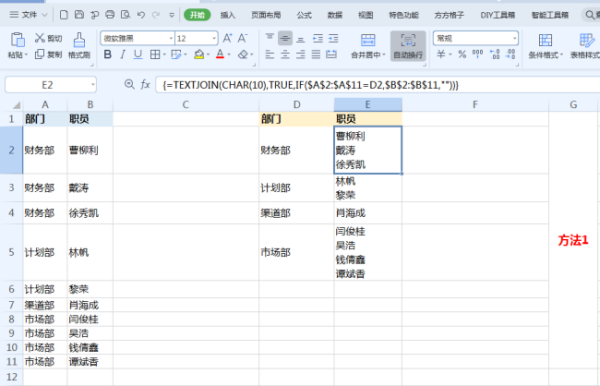 数组公式按ctrl+shift+回车键,单元格格式设置自动换行。