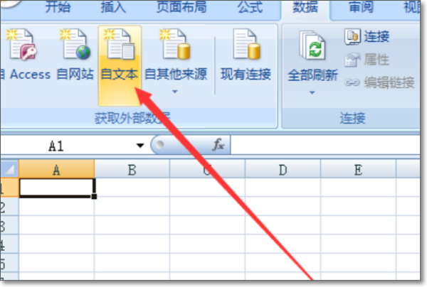 3、在获取外部数据选项卡下,其中就有一项是来自文本选项,我们点击选择,接下来就会蹦出来一个文本路径选择的对话框。