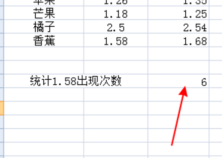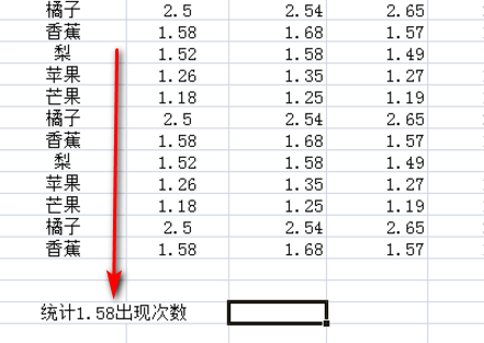 1、首先,打开Excel表格,需要在以下表格中,统计1.58出现的次数。