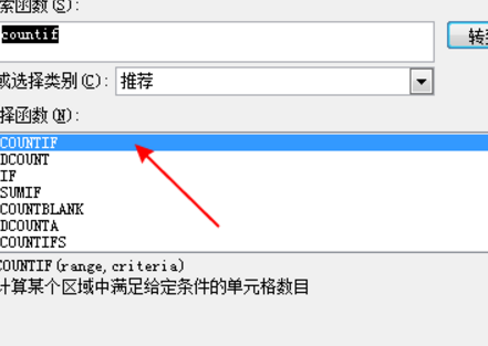4、如果找不到也可以直接搜索:countif,点击转到按钮。