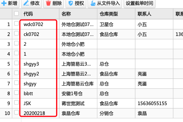 仓库代码需要跟上游OMS/ERP系统内的仓库代码保持一致。