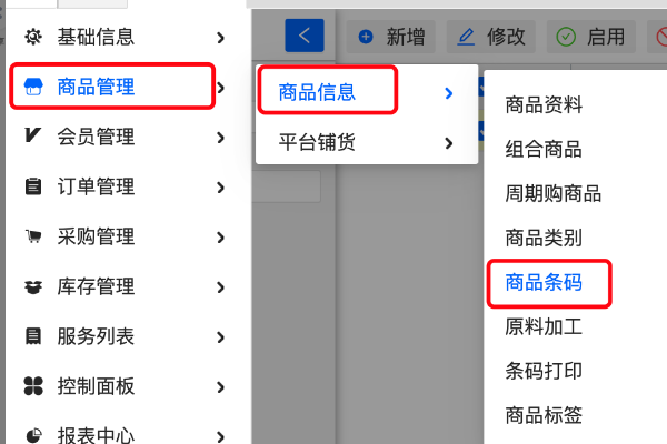百川WMS中,商品同步、库存同步、单据同步都是基于商品条码来进行业务流转的,所以商品必须要建立条码信息。在【商品管理】-【商品信息】-【商品条码】中维护商品的条码信息,保证百川WMS的商品条码=上游OMS/WMS系统中的商品代码。