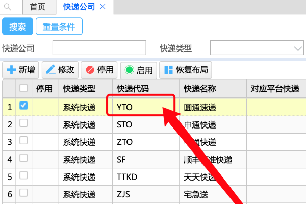 在【基础信息】-【快递管理】-【快递公司】内,可以单独配置映射的快递代码,没有配置就映射系统的快递代码,如下图。