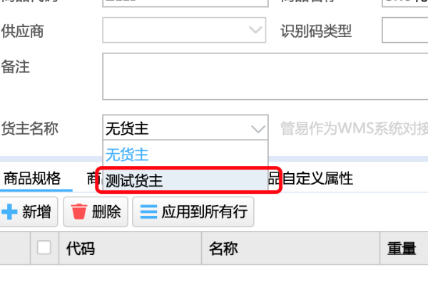 2、商品资料内配置货主