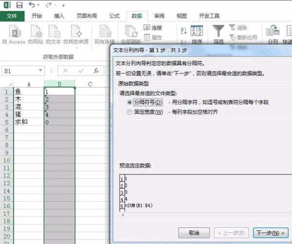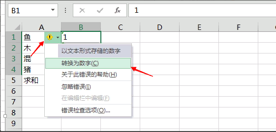 1.如下图所示,B列中看上去是数字,却无法得到求和结果: