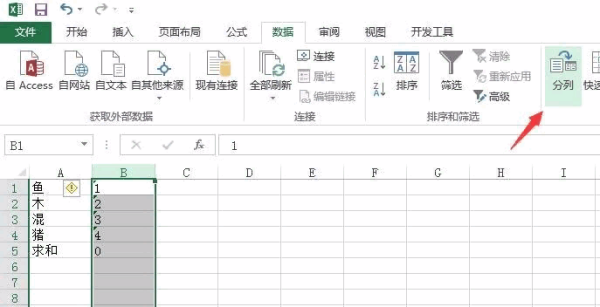 4.还可以使用分列法:选择数字所在列,点击数据,“分列”,如下图所示: