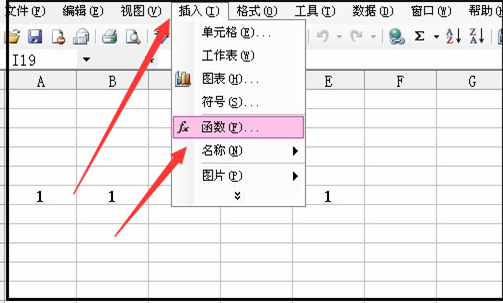2、然后点击界面上方的“插入”菜单,点击“函数”选项。