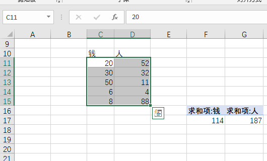 4、求和勾打上之后,再重新选中数据,求和的数据就出来了。