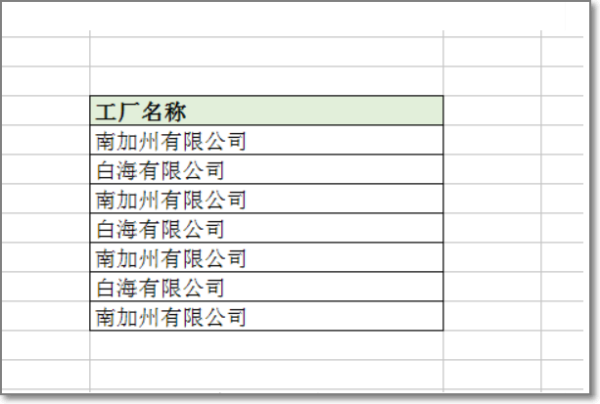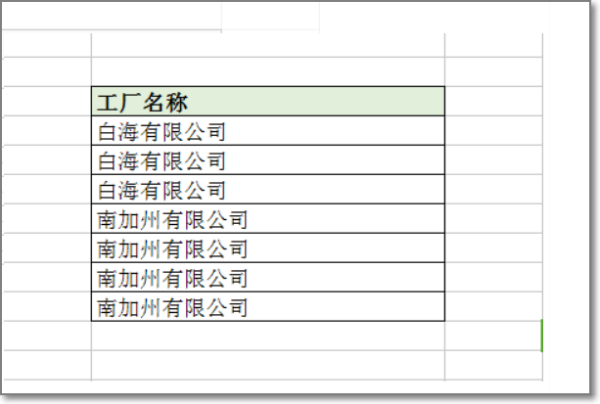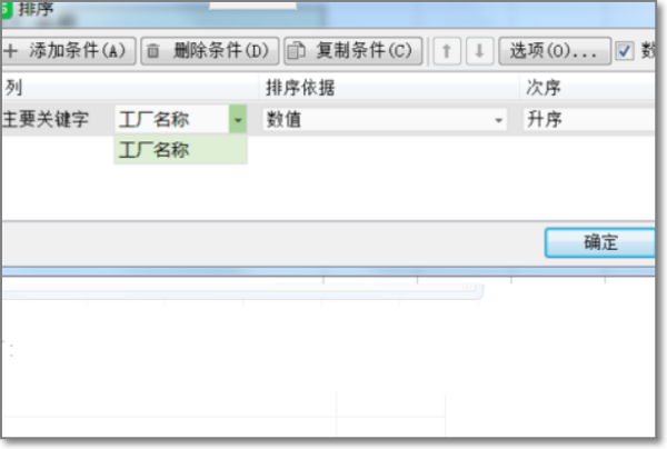 1、例如有两家不同名称的工厂,需要让相同名称排列在一起。