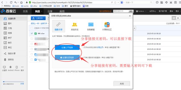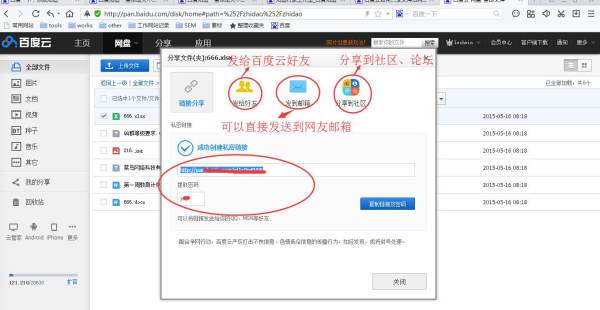 百度云有四个办法共享文件给网友,另外三种分享方式操作如下: