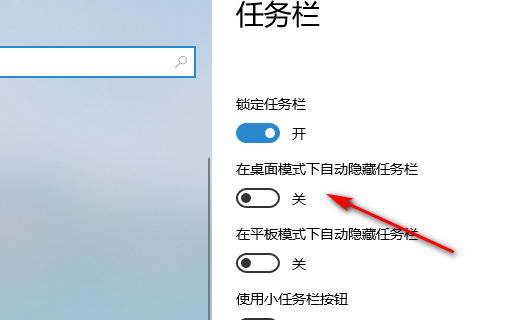 3、在右侧任务栏中,把在桌面模式下的自动隐藏任务栏关闭。
