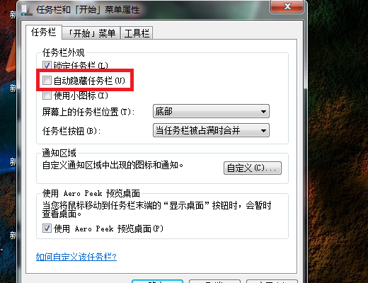 3、然后在任务栏页面中,取消勾选“自动隐藏任务栏”选项。