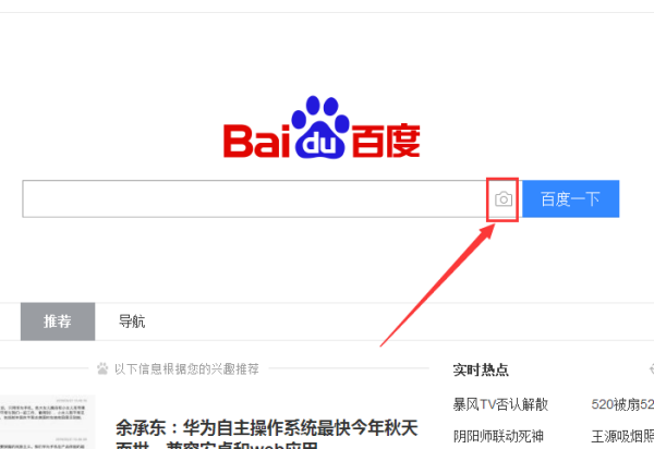 一、首先在浏览器中打开百度,然后点击“相机”。