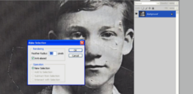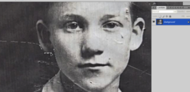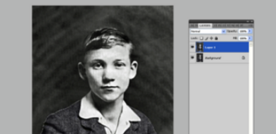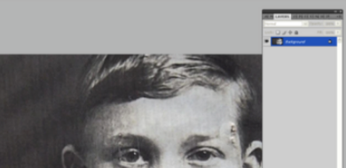 9、继续使用完好的部分来修补照片的缺口,直到照片所有的破损部分都得到修补,达到理想的状态。如果照片褪色极为严重的话,那么你需要使用图层蒙板来提高照片的饱和度。