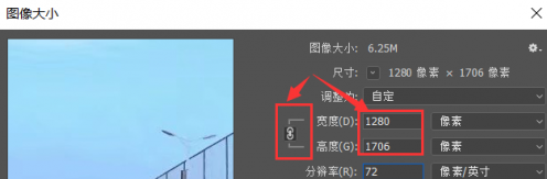 点击高度,宽度前面的链接,避免修改之后图片变形