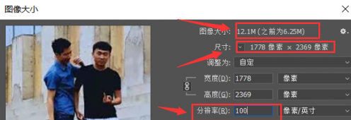 6.现在可修改原图片的分辨率,高度,宽度,像素大小,修改图片的参数后,图片的像素,高度,宽度,大小随着改变