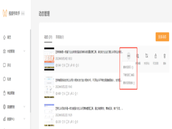 微信视频号网址链接获取的方法如下:1、使用视频号管理者的微信扫码登录,在任意一个视频后面,点击三个点,复制视频链接,复制的链接用户需要在微信手机端才能打开。