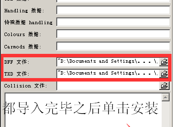 3.DFF文件与TXD文件都导入完毕之后,单击安装。出现Done!表示安装成功,现在只要退出就行。如图所示。