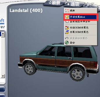 1.打开GGMM v1.2.exe和下载好的汽车mod。点击选项,再点击手动安装mod,会出现一个表格。如图所示。