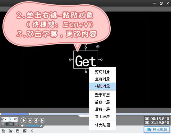 选中字幕,鼠标右键选择“复制对象”快捷键:Ctrl+C,定位到新的时间点,右键选择“粘贴对象”快捷键:Ctrl+V,双击字幕,在弹出框中修改文字,即可快速添加同样式字幕。