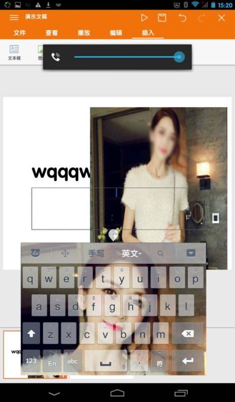 2.第一张照片,在手机上打开任何一个可以聊天或者可以输入字体的对话框输入字体.输入法键盘展开.抓图/保存.