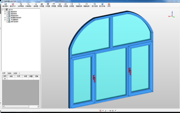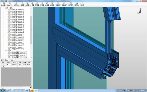 你可以试下豪典门窗软件,网络版可以免费用,不过功能会少点,还要求联网使用。软件是用型材截面搭接节点算料的,自动生成下料清单。可以查看任何部位的节点图,整窗三维图等。