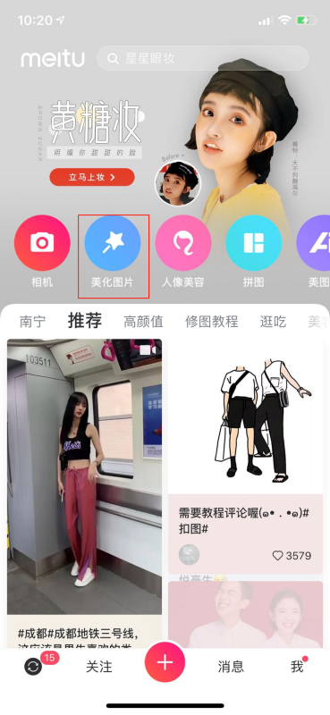 1、首先需要在手机自带的应用商店也就是APP store中下载,下载完毕之后打开,点击“美化图片”。