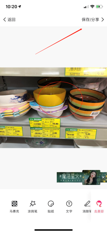 5、编辑完成之后,点击右上角的“保存/分享”选项,即可在相册中查看。