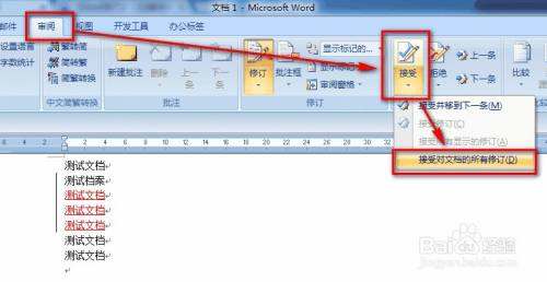 选择【审阅】-【接受】-【接受对文档的所有修订】即可。