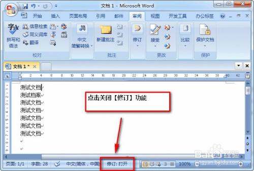 注意:在这种状态下,对文档的修订已经不存在了。如果在没有关闭修订状态的情况下继续修改文档,该竖线还是会出现的。可以通过点击如下图的按钮关闭【修订】功能。