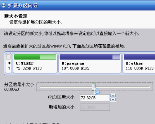 5、在将滑块条向右拖动的同时,您也将看到C盘的大小在增大,D盘大小在减少。