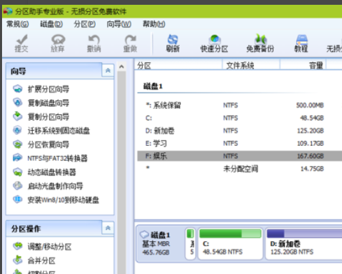 1、下载免费的分区助手,然后安装并运行它。您将看到下面的主界面,请点击蓝色圈住的选项“扩展分区向导”。